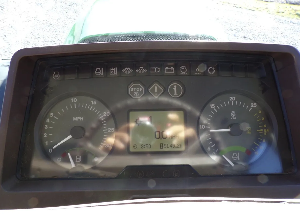 This 2006 John Deere 6420 tractor has 5,150 hours and features MFWD with a 16-speed Power Quad transmission, providing smooth operation and reliable performance for a variety of agricultural and field tasks. The tractor includes two hydraulic remotes, a 3-point hitch with top link, and a 540/1000 PTO for versatile implement operation.