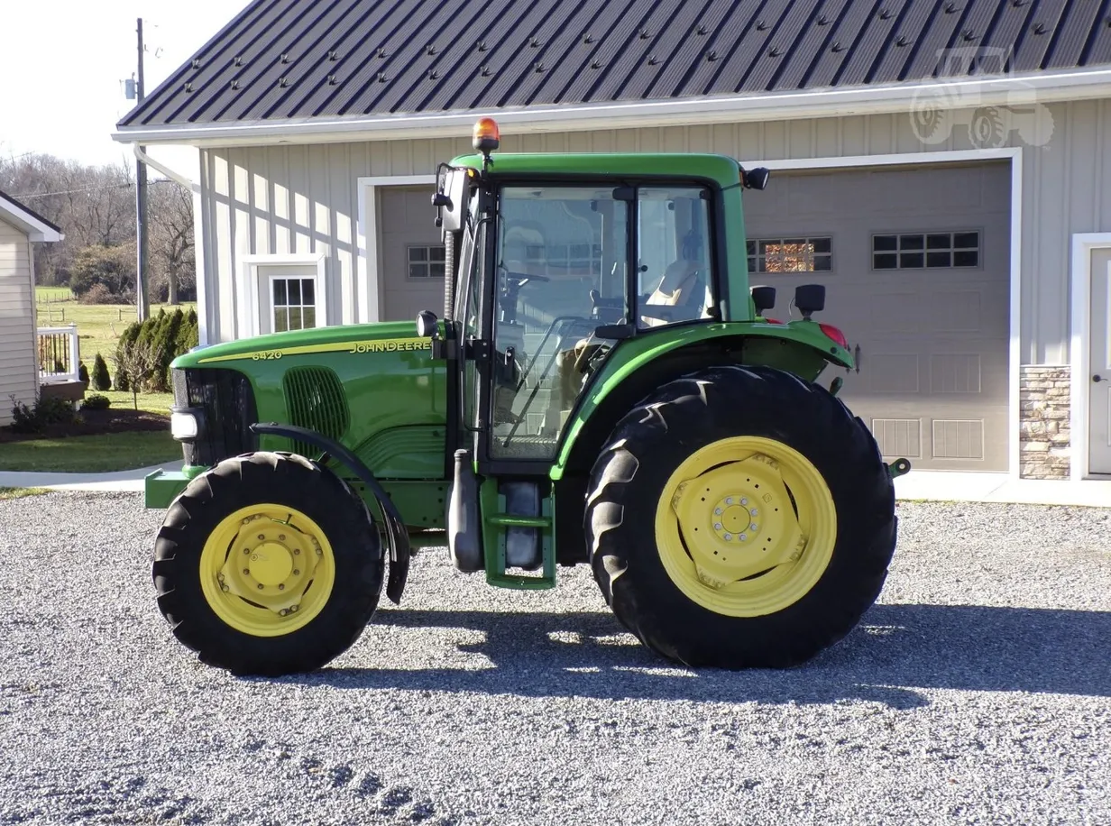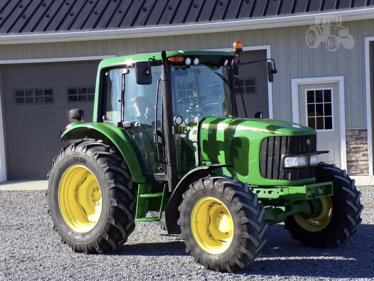 Year: 2006, Make: John Deere, Model: 6420, Hours: 5,150, Drive Type: MFWD, Transmission: 16-Speed Power Quad, Fuel Type: Diesel, Engine: 110 HP, PTO: 540/1000, Hydraulic Remotes: 2 SCVs, Cab: Standard, Tires: 18.4R34 Rear, 16.9R24 Front, Serial Number: L06420H491208.