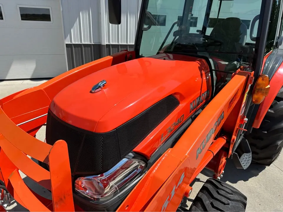 Year: 2012, Make: Kubota, Model: L3240, Hours: 251, Drive Type: 4×4, Transmission: Hydrostatic, Fuel Type: Diesel, Engine: 24–25 HP, Cab: Enclosed with Heat, AC & Radio, Serial Number: 73568.