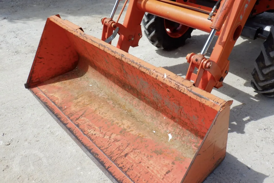Additional features include a Kubota front-end loader with quick-attach bucket, rear PTO at 540 RPM, one rear hydraulic remote, differential lock, and a rear three-point hitch, making this machine versatile and ready for immediate use.