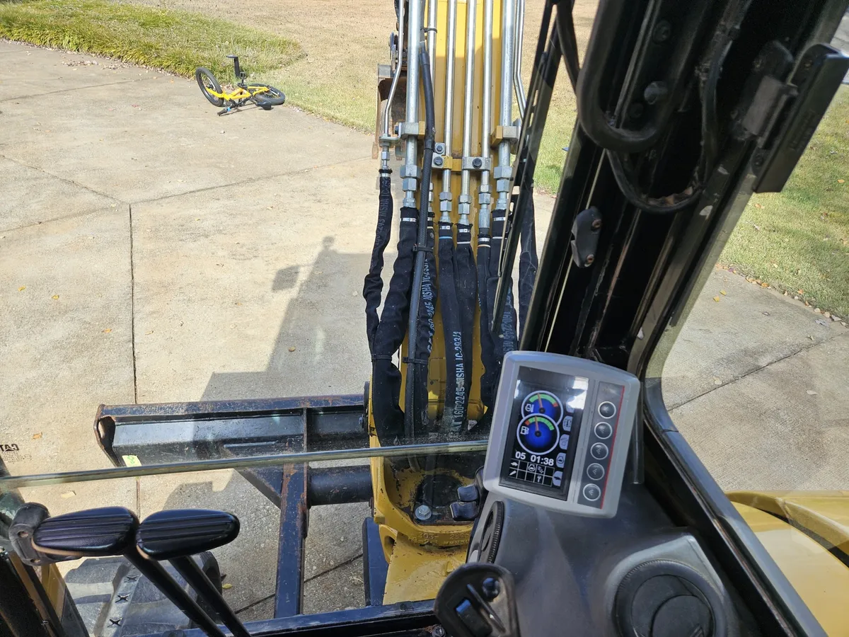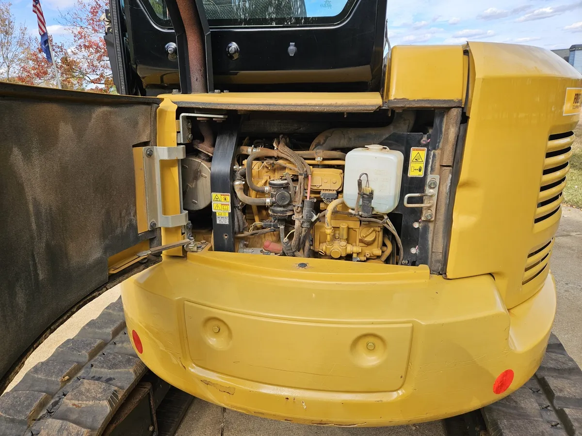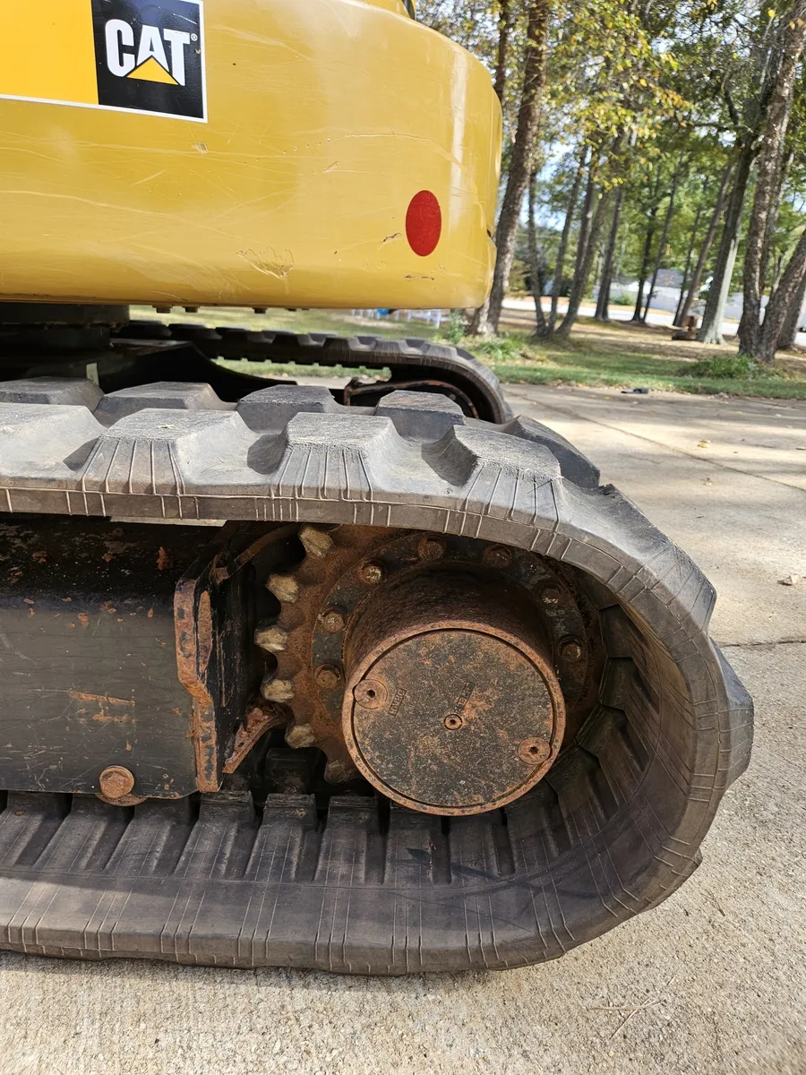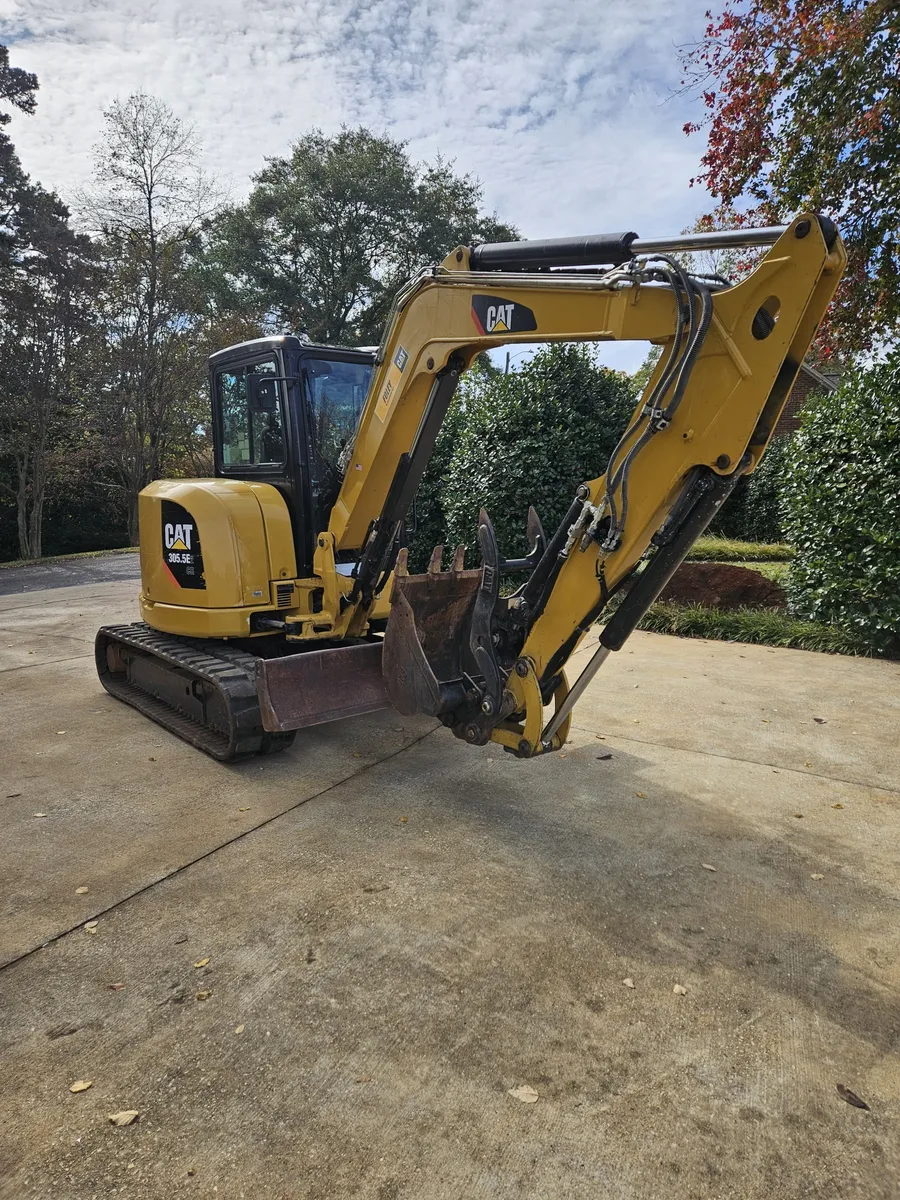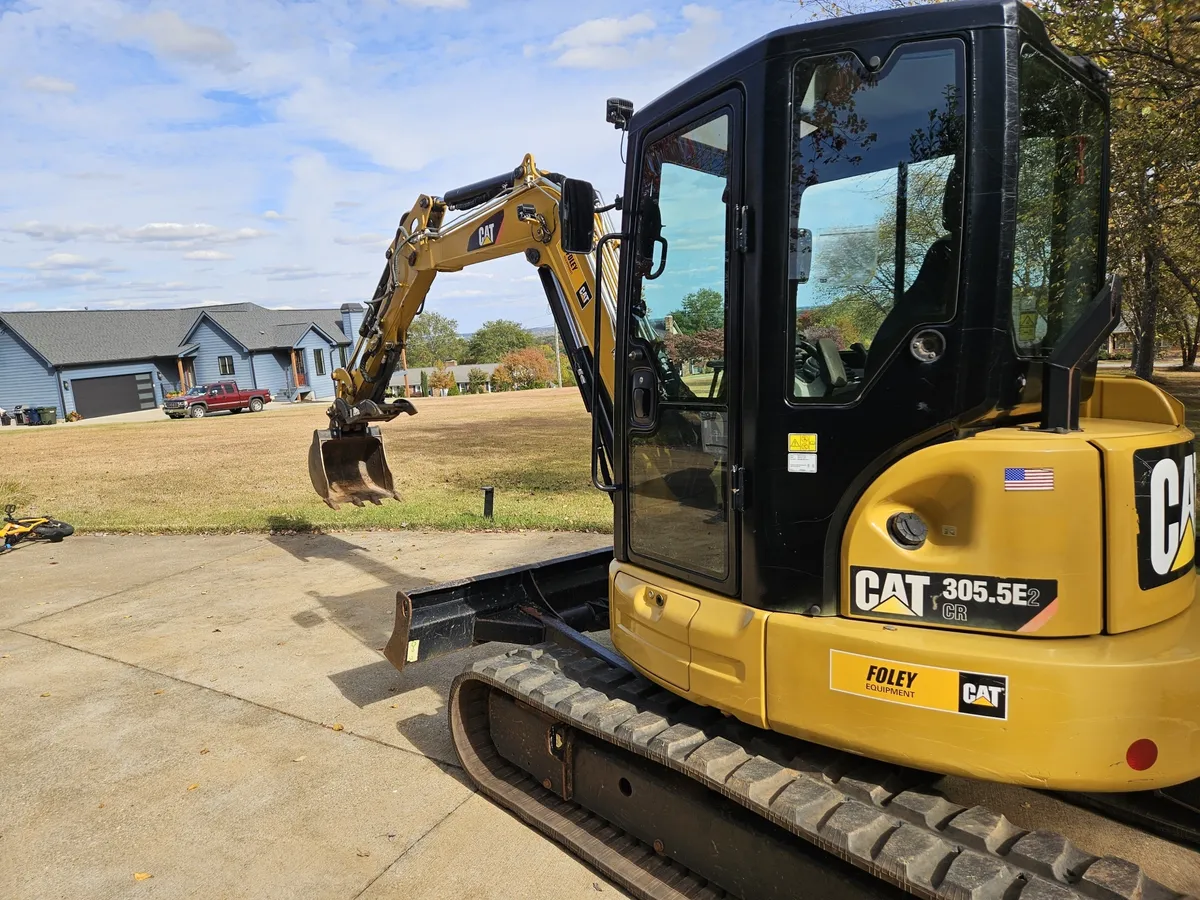 This 2017 Cat 305.5 E2 CR mini excavator has 2,326 hours and features tracked movement with tight, as-new tracks, providing stability and precision for digging, trenching, and material handling. The enclosed cab with air conditioning, heat, and radio ensures operator comfort for long working days.