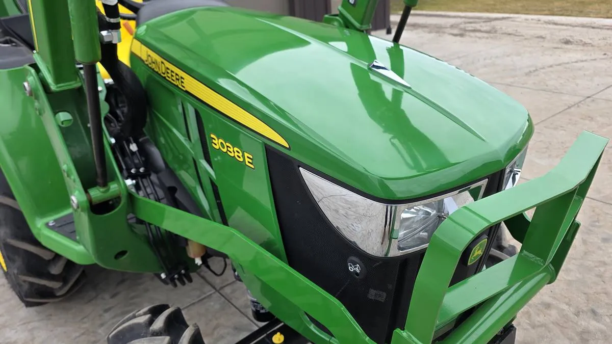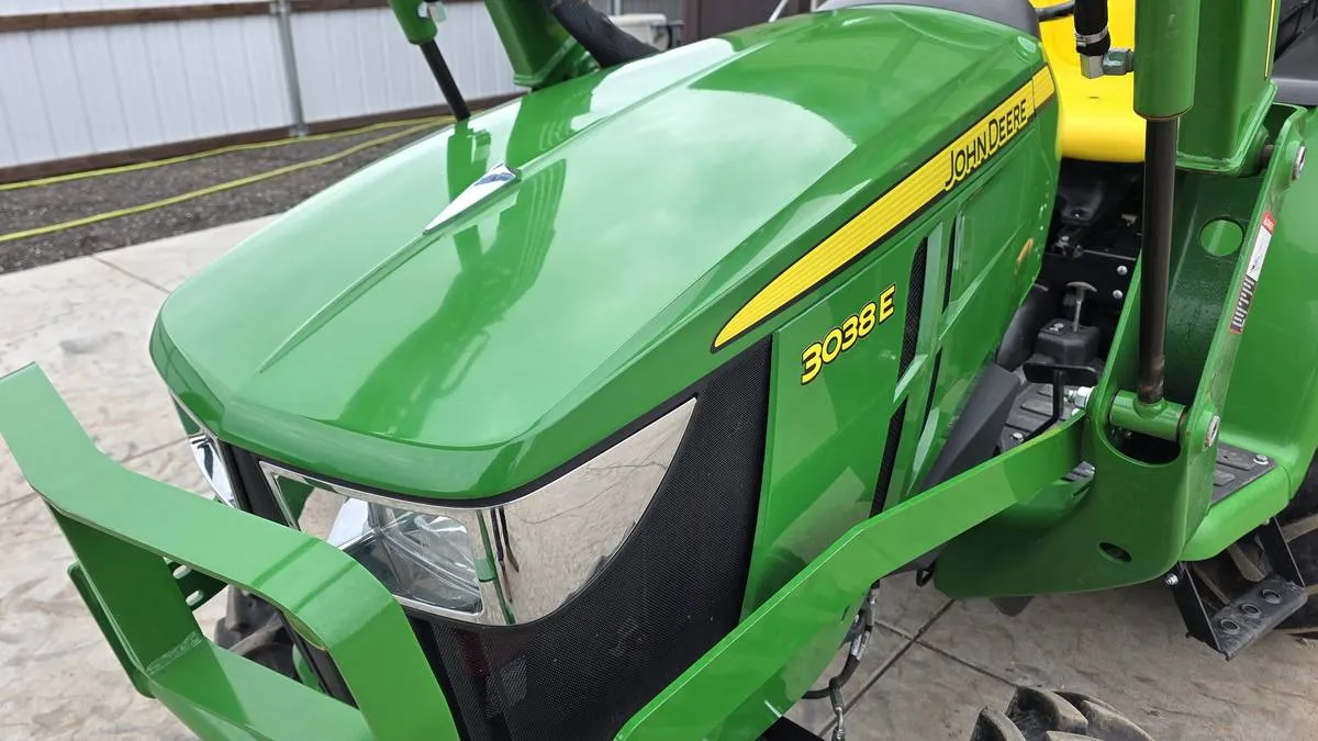 This 2019 John Deere 3038E compact tractor has 168 hours and features 4WD with a hydrostatic transmission, providing smooth and precise control for landscaping, property maintenance, and light agricultural tasks.