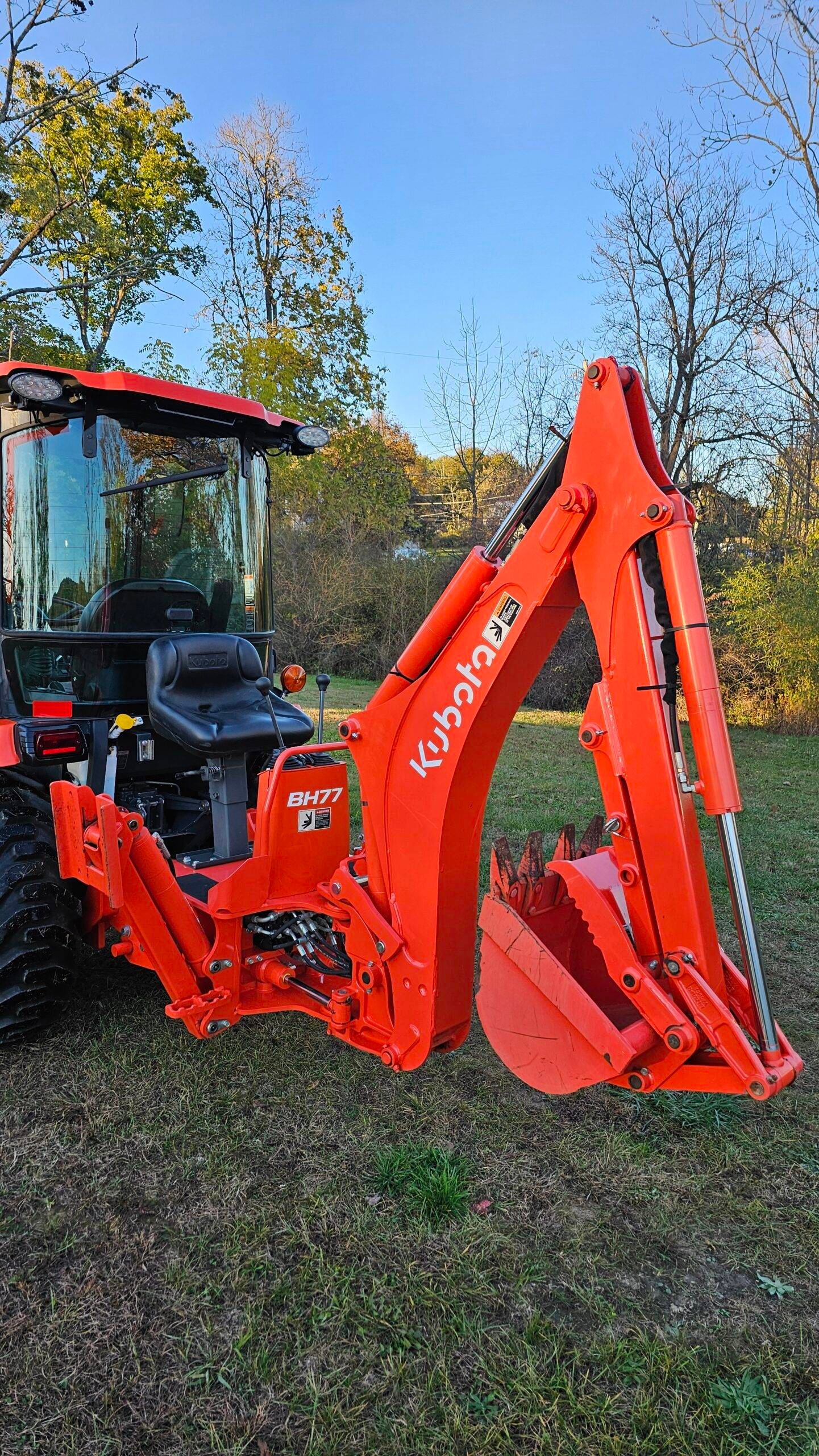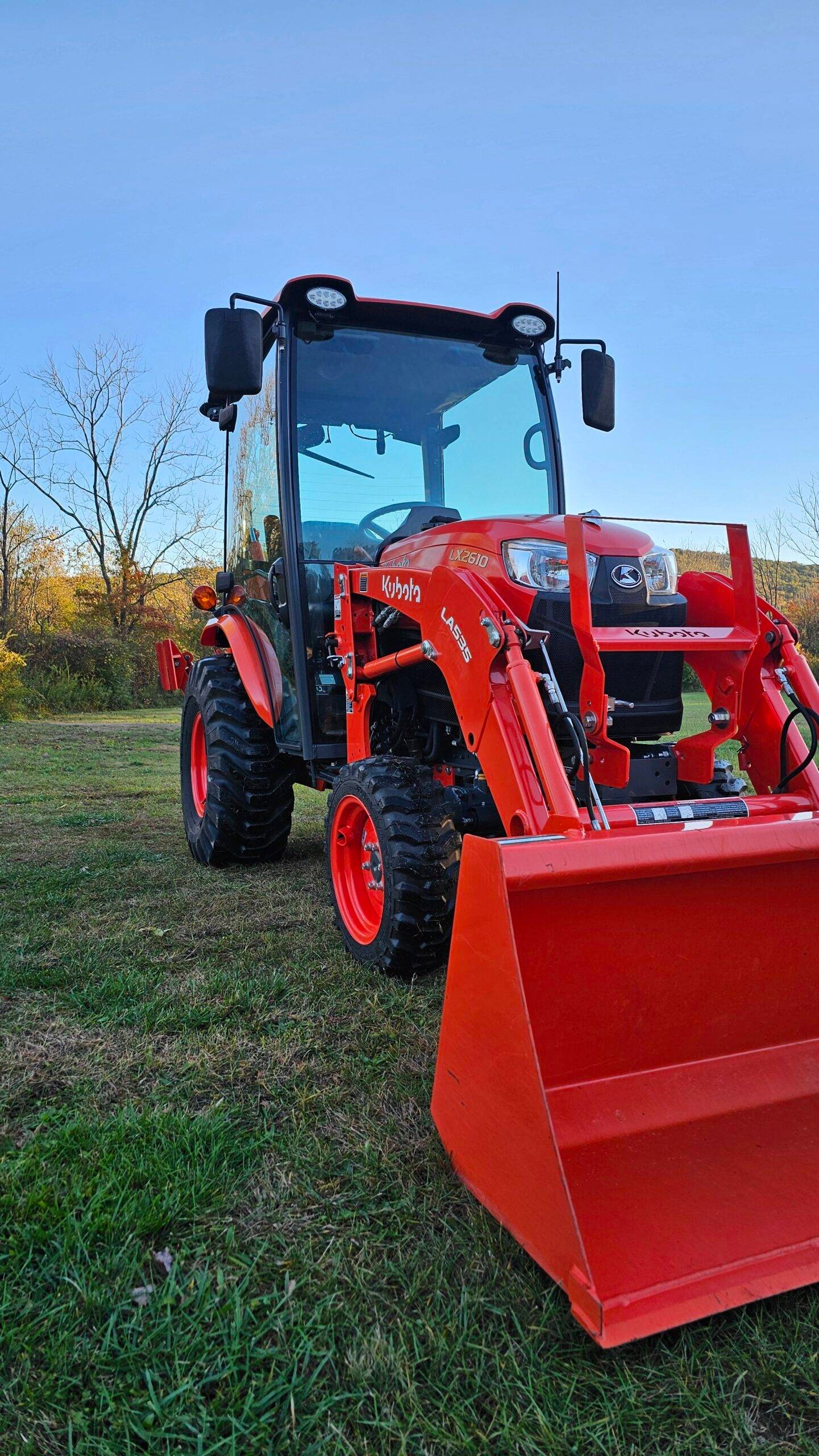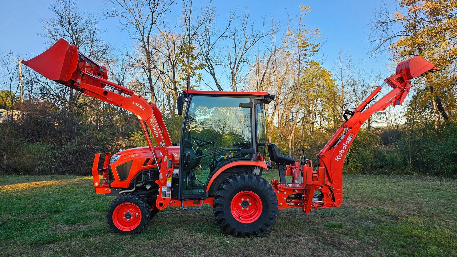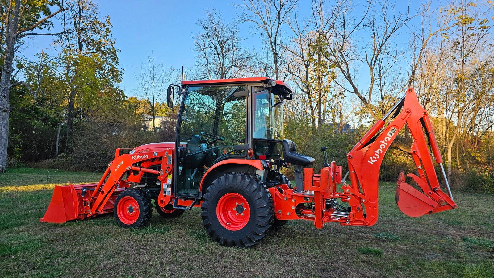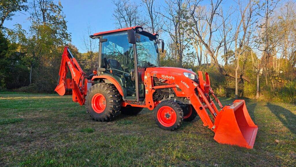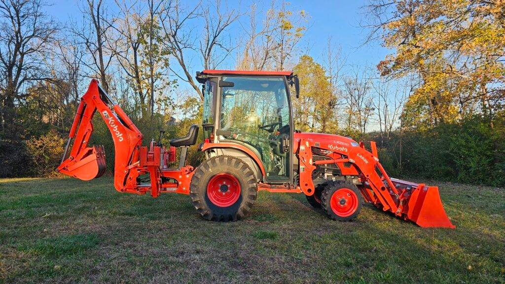 Year: 2020, Make: Kubota, Model: LX2610, Hours: 72, Drive Type: 4WD, Transmission: 3-Range Hydrostatic (HST), Fuel Type: Diesel, Horsepower: 25 HP, Engine: 3-Cylinder Kubota Diesel, Weight: 4,000 lbs, Cab: Factory Enclosed with Heat, A/C & Radio, Loader: LA535 (1,067 lb Lift Capacity), Backhoe: BH77 with 16″ Bucket & Mechanical Thumb, PTO: Mid (2,500 RPM) & Rear (540), Attachments: 60″ Land Pride Snow Pusher & 3-Point Hitch, Serial Number: KBUB8AHCTN1L33131.