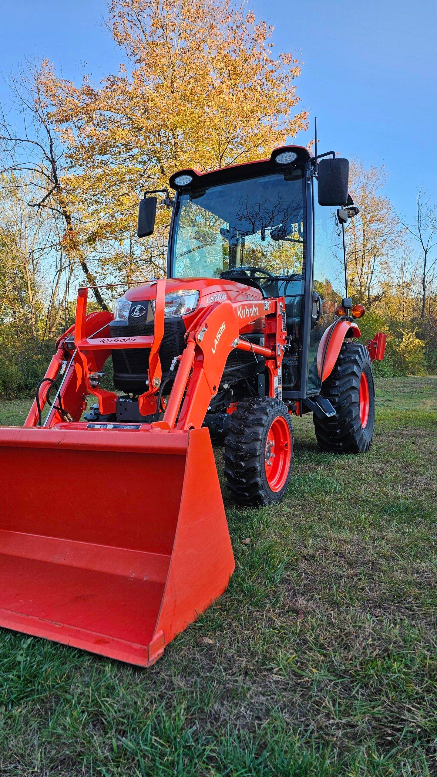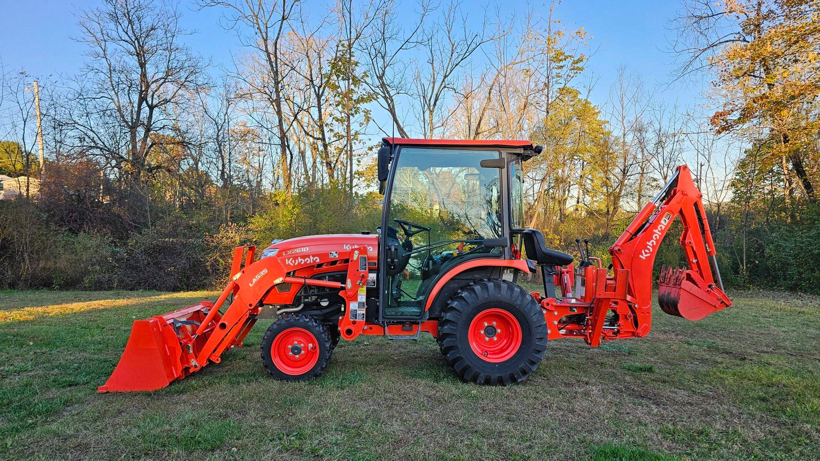 This 2020 Kubota LX2610 compact tractor has only 72 hours and comes equipped with 4WD and a 3-range hydrostatic transmission, providing smooth, precise control for loader work, digging, snow removal, and property maintenance. This tractor-loader-backhoe (TLB) package is in like-new condition and has been very well maintained.