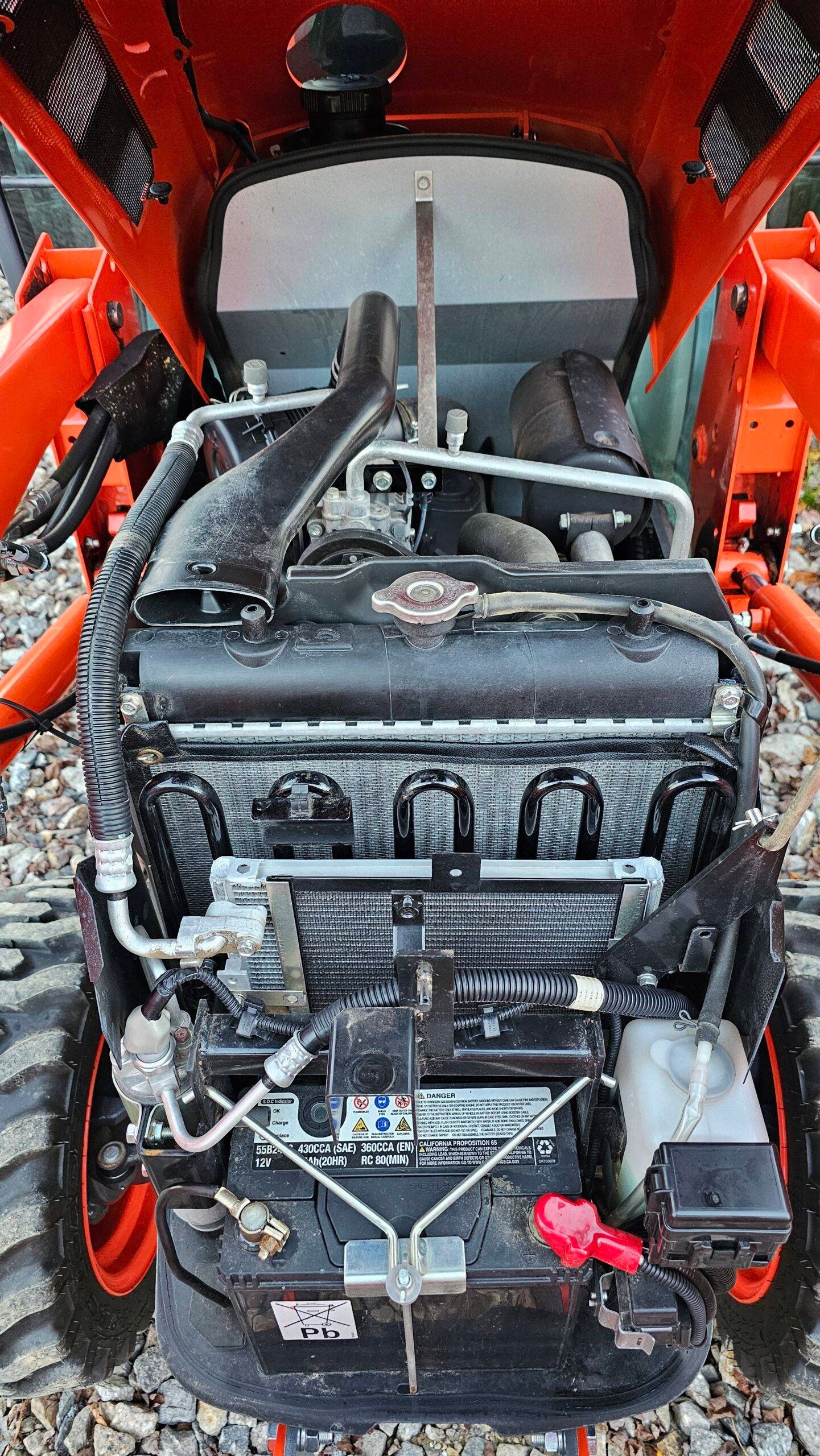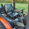 Power comes from a 25-horsepower Kubota 3-cylinder diesel engine, delivering reliable performance and efficient operation. The tractor includes power steering, locking rear differential, and tires with approximately 98% tread life, ensuring strong traction and stability.