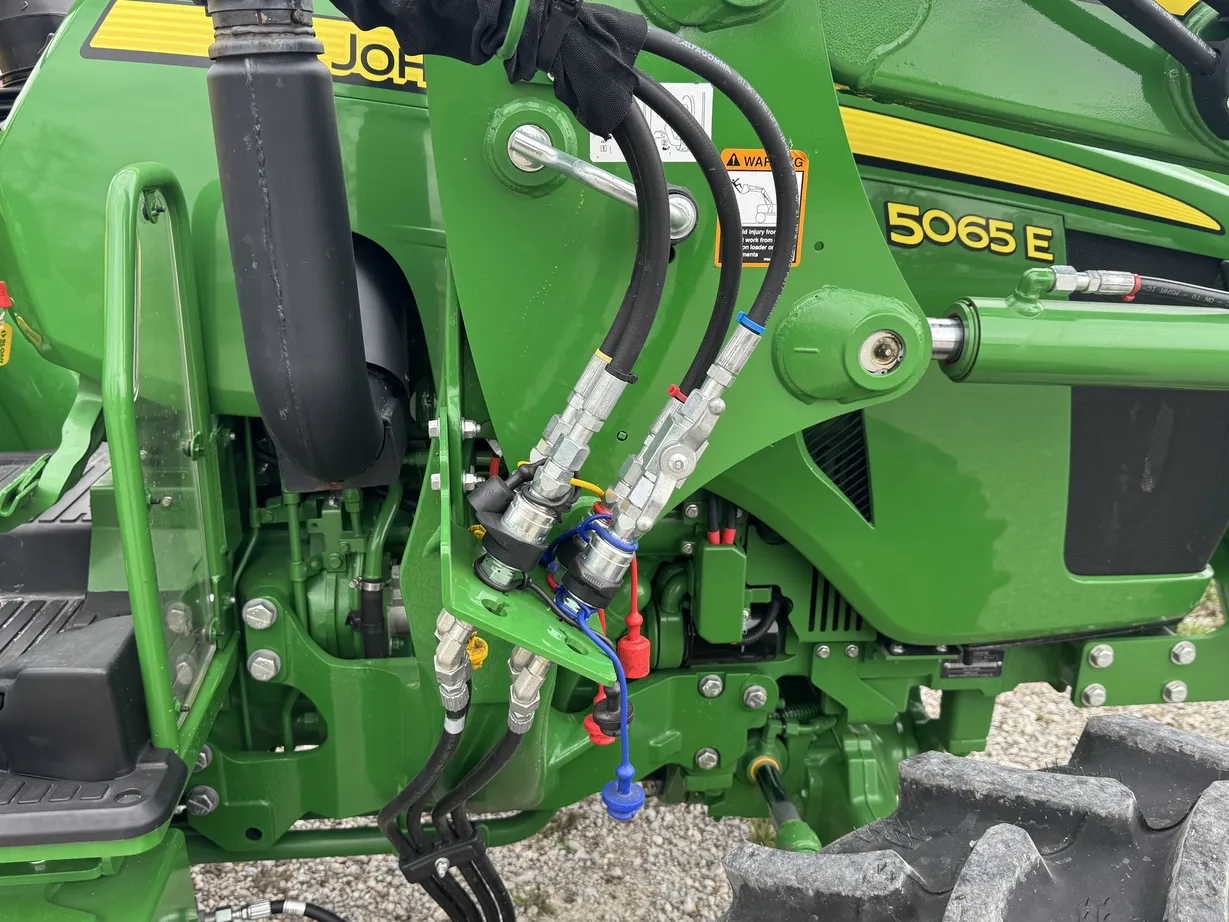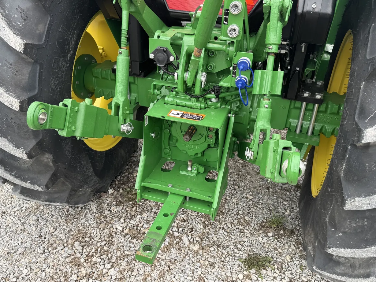Additional equipment includes a Kubota BH77 subframe backhoe with a mechanical thumb, along with rear and mid PTOs for operating a variety of implements, making this machine ideal for farm, landscaping, and property management applications.