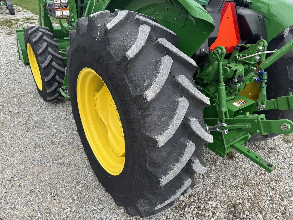 Power comes from a 26-horsepower Kubota diesel engine with a liquid-cooled system, delivering reliable and efficient performance. The tractor also includes power steering, wet disc brakes, and like-new tires on all four corners for stable handling and dependable operation.