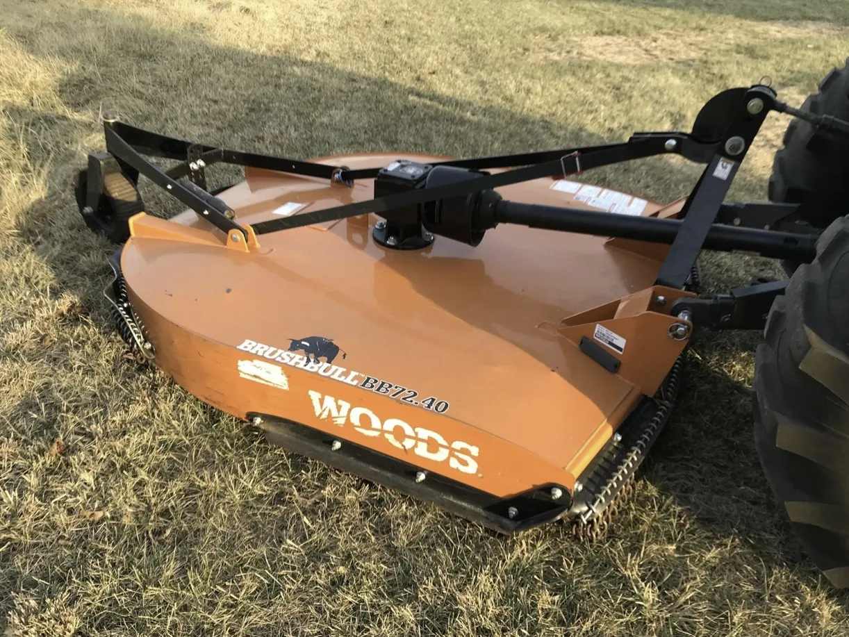 Additional features include an LA1065A front loader with 72-inch quick attach bucket, one rear hydraulic remote, 540 PTO, R4 industrial tires, two sets of rear weights, a three-point hitch, and a Woods 72” rear cutter, making this machine versatile and ready for heavy-duty farm and property tasks.