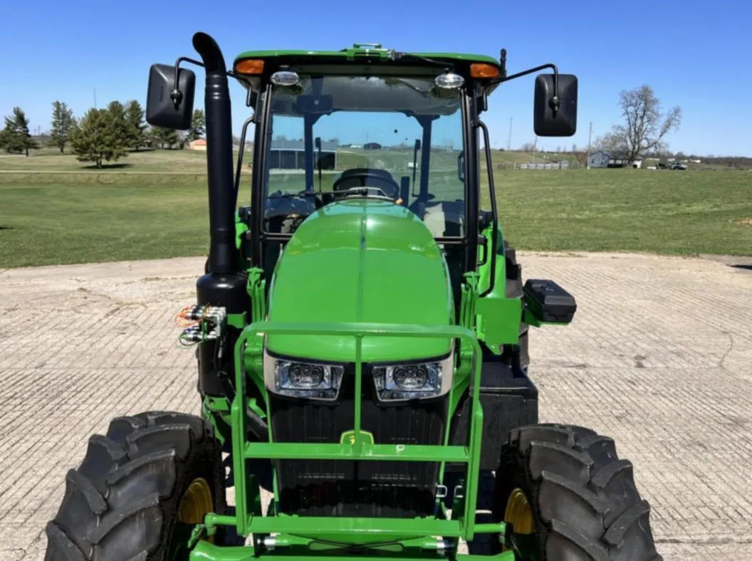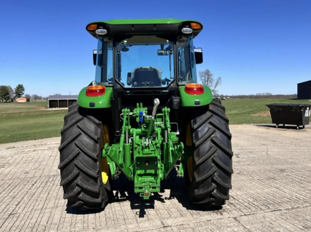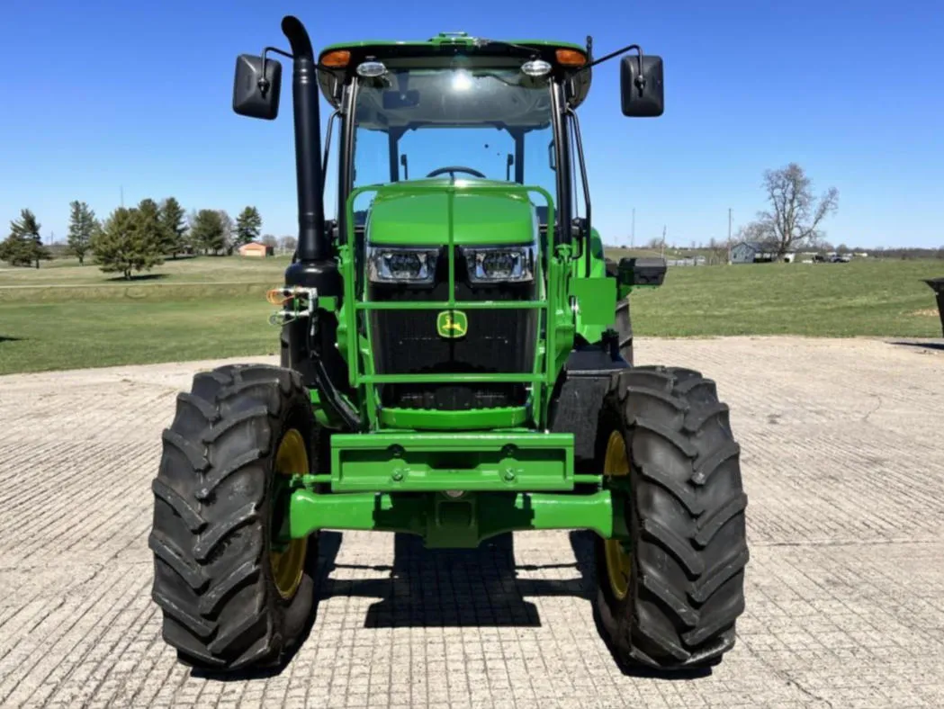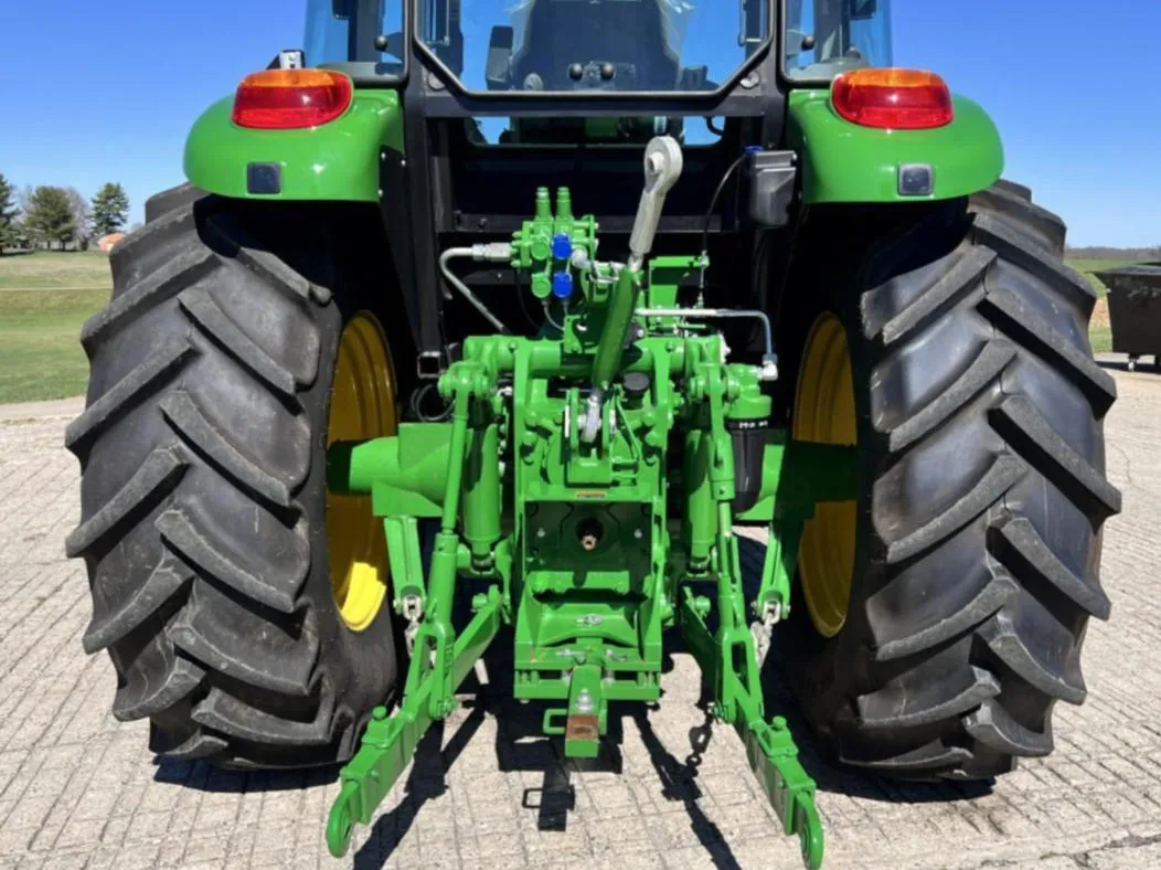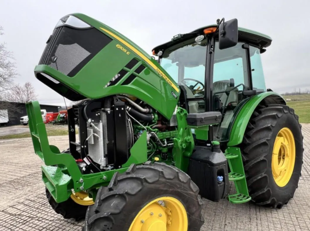 Year: 2023, Make: John Deere, Model: 6105E, Hours: 128, Drive Type: MFWD, Transmission: 12-Speed Synchro with Left-Hand Reverser, Fuel Type: Diesel, Engine Power: 105 HP, PTO: 89 HP, Cab: Enclosed with AM/FM/WB Radio, Air Seat & Buddy Seat, Loader Ready with Joystick, Tires: 340/85R24 Front, 460/85R34 Rear, Serial Number: 1P06105EJN6250804.