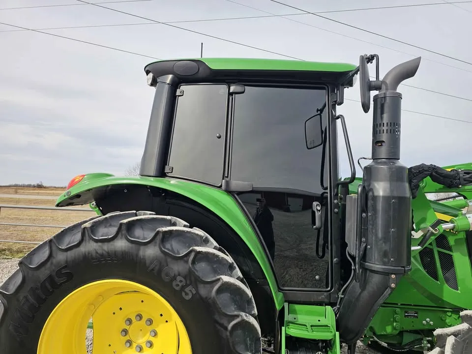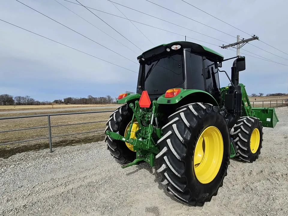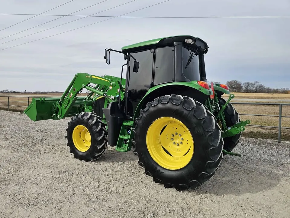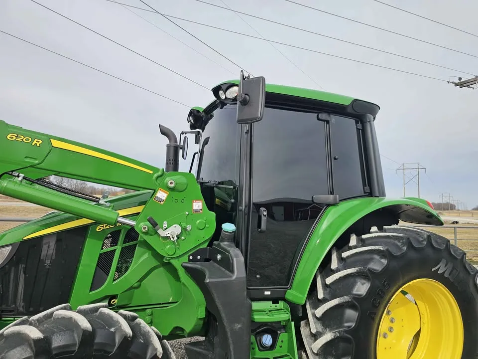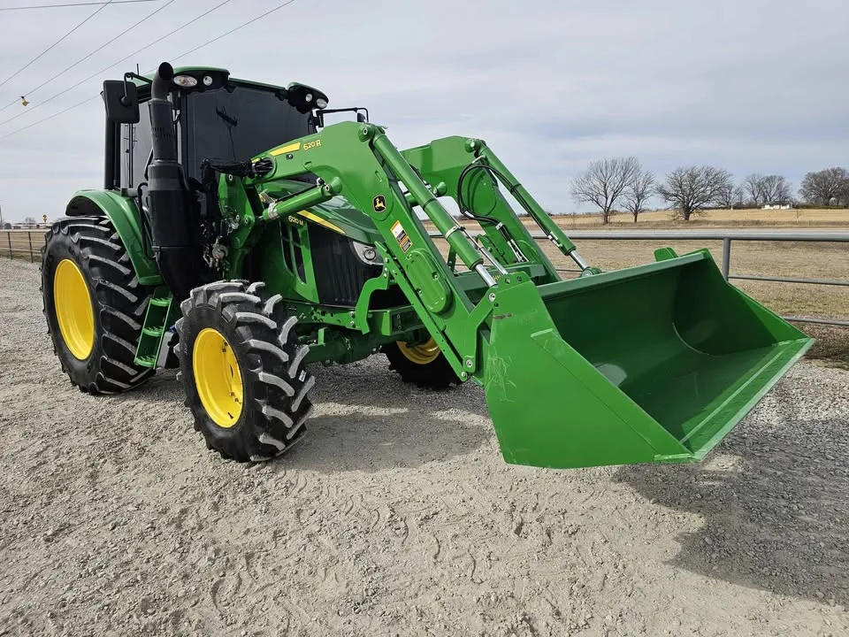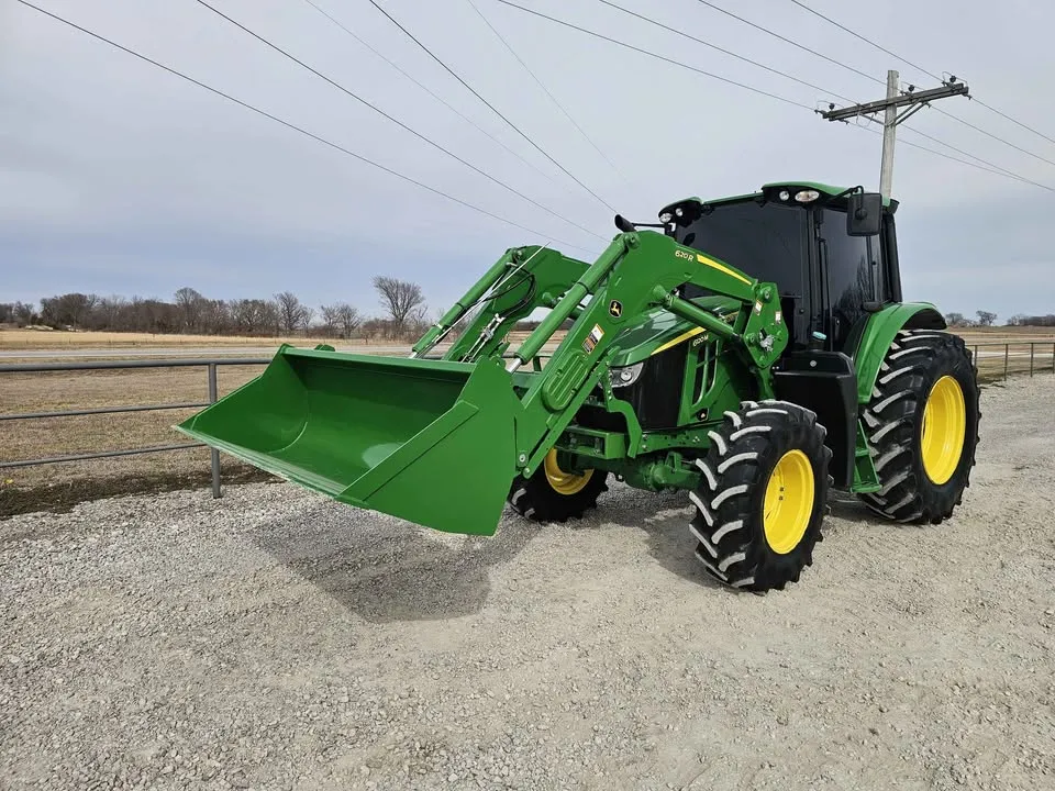 Year: 2023, Make: John Deere, Model: 6120M, Hours: 666, Drive Type: MFWD, Transmission: 16-Speed Power Quad with Left-Hand Reverser, Fuel Type: Diesel, Cab: Enclosed with Heat, AC, Radio & Buddy Seat, Loader: John Deere 620R Self-Leveling with Quick Attach Bucket and Joystick, PTO: 540/1000, Hydraulic Remotes: 2, Serial Number: 1L06120MCKG933147.