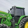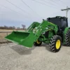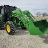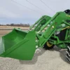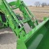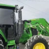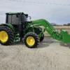 Additional equipment includes a John Deere 620R self-leveling loader with quick-attach bucket and joystick controls, making this machine ideal for lifting, material handling, and general farm or property maintenance tasks.